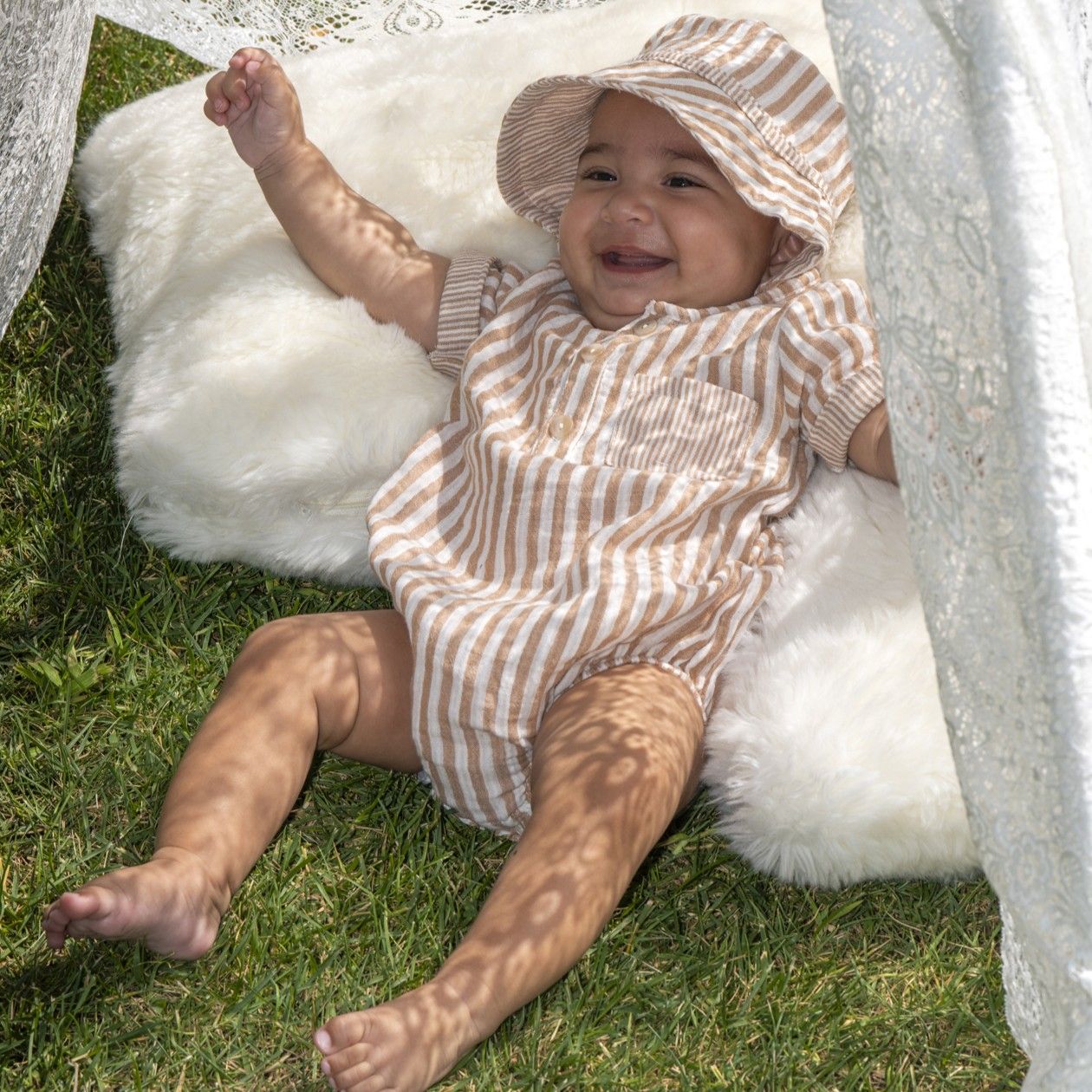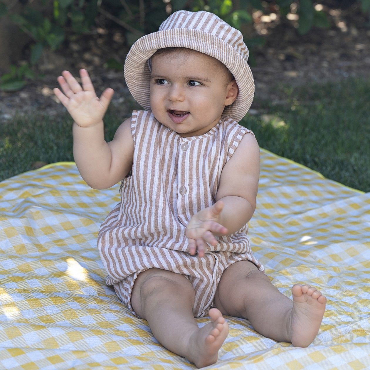 Chapeau bob bébé gaze de coton bio BB&CO rayé caramel