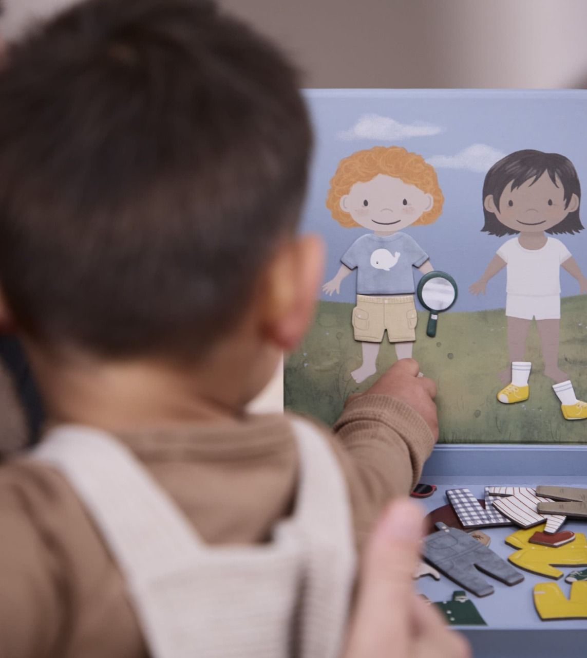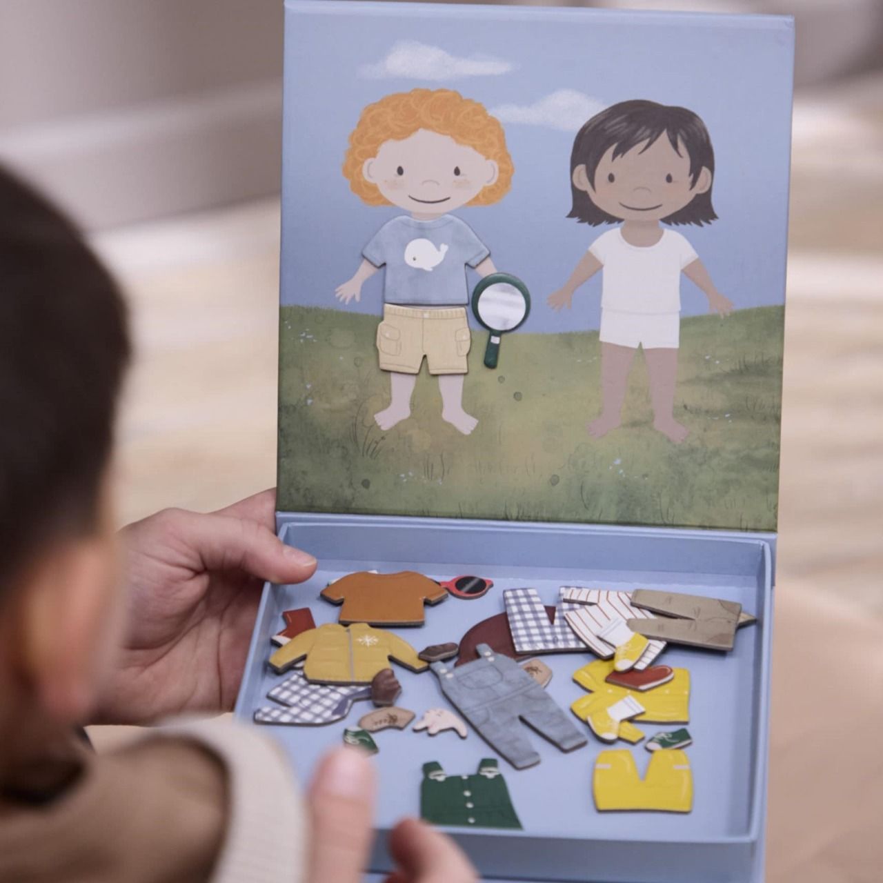 Avec le jeu magnétique de Silhouettes à habiller, les enfants peuvent mixer et assortir une gamme de tenues et d'accessoires pour créer des combinaisons uniques grâce à la magie des pièces en magnet.
