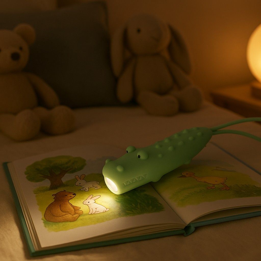Lampe torche pour enfant en silicone Little L "silicone flashlight crocodile" jolie crocodile vert.