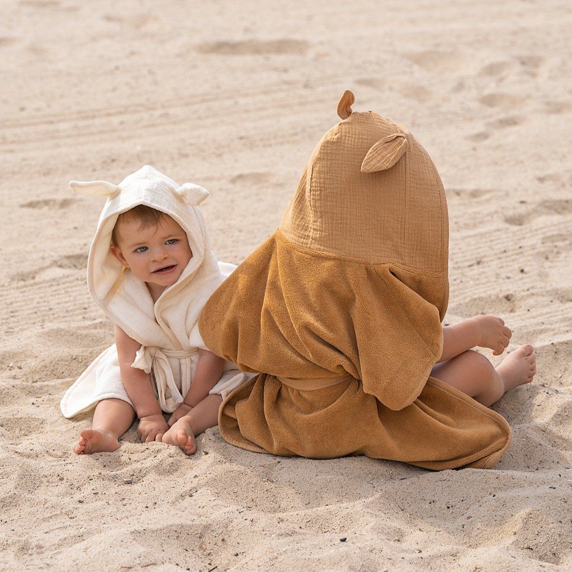 Peignoir de bain bébé et enfant BB&CO soft bambou et double gaze de coton en coloris mousse de lait écru.