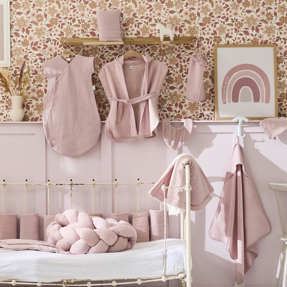 Peignoir de bain bébé et enfant BB&CO soft bambou et double gaze de coton en coloris rose pétale.