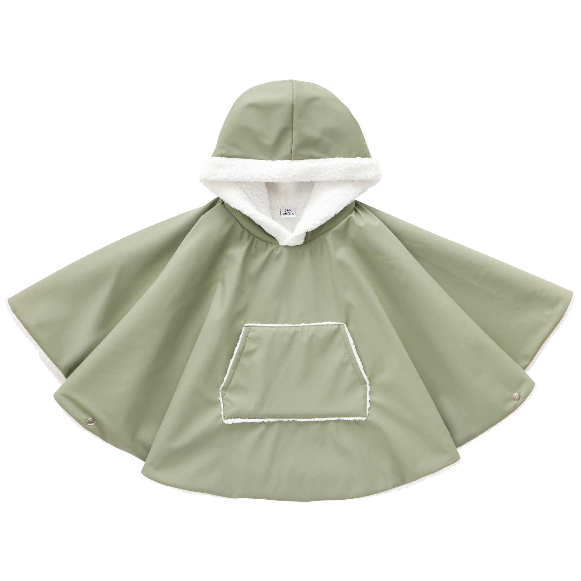 Poncho de pluie ciré pour bébé en tissu imperméable et sherpa de la marque BB&CO vert sauge.