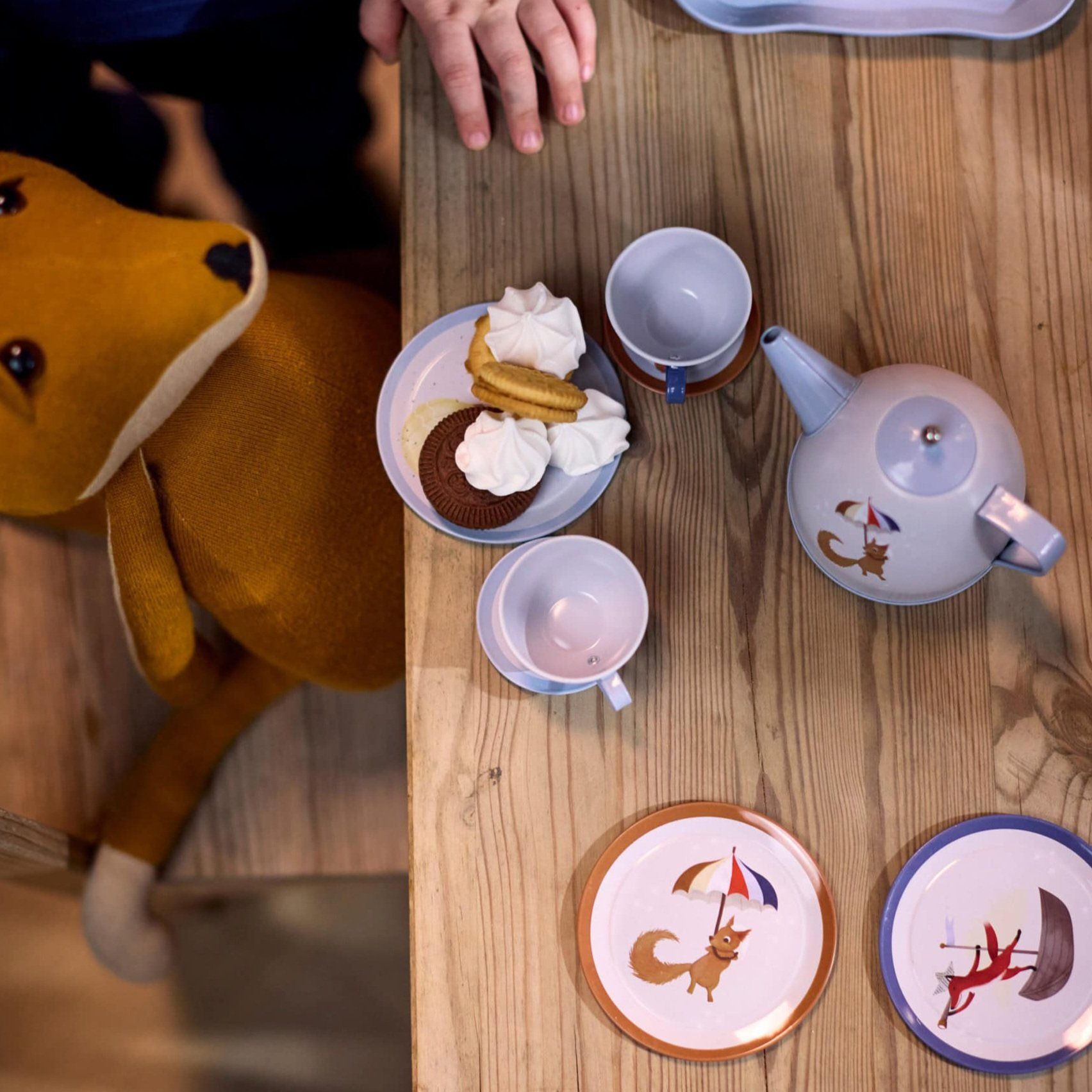 Un adorable service à thé en métal dans une valisette assortie de la marque Filibabba.