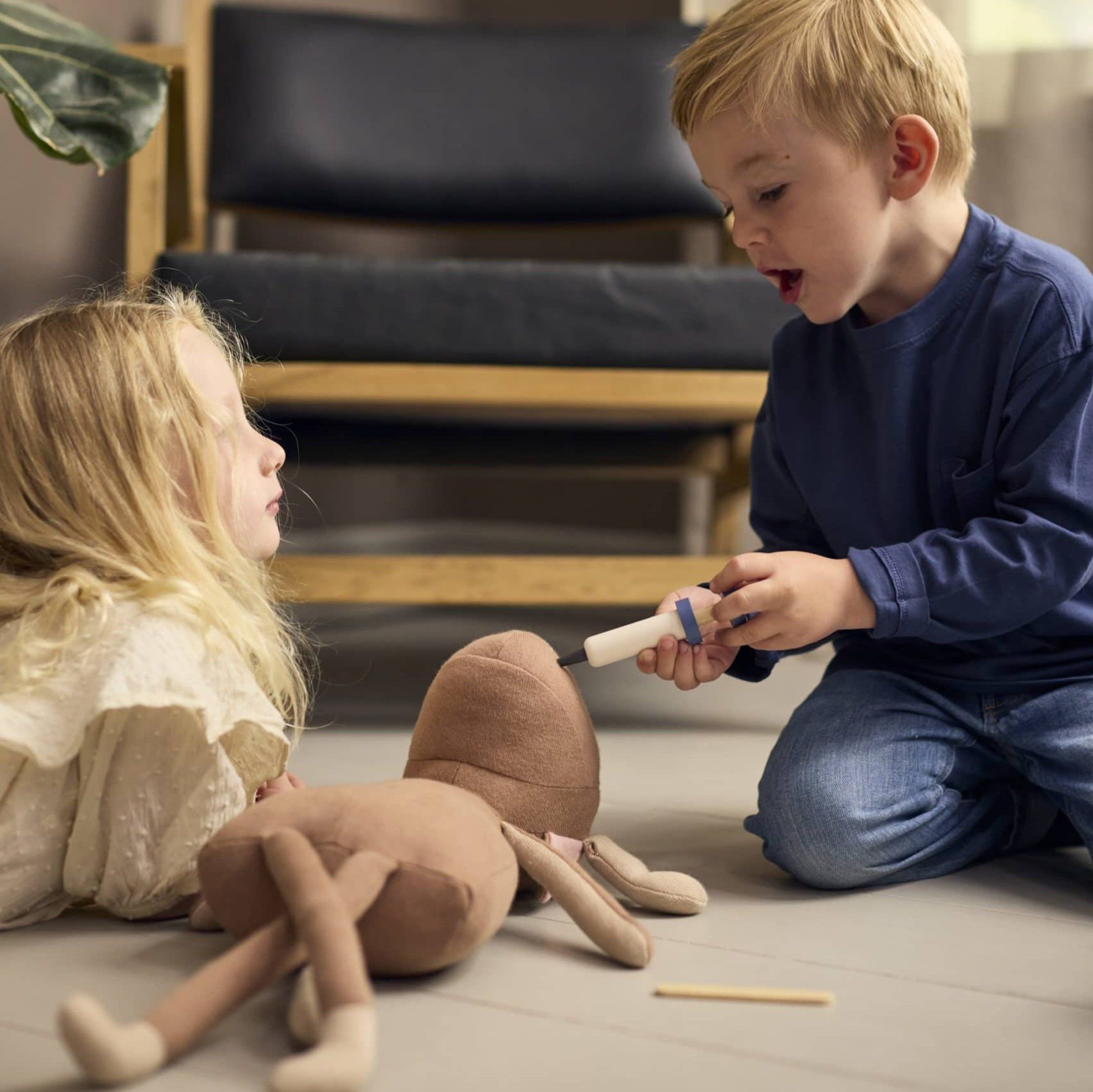 Laissez votre enfant se glisser dans la peau d'un médecin attentionné avec ce charmant coffret Petit Docteur de FILIBABBA. Idéal pour stimuler l'imagination et le jeu de rôle, ce coffret encourage la créativité et permet aux enfants d'explorer le monde de la médecine de façon ludique et captivante. Qu'il s'agisse d'examiner son ours en peluche préféré ou de soigner une poupée, ce coffret inspire l'empathie, la curiosité et la confiance en soi. Il est également idéal pour apaiser les appréhensions liées aux vraies visites chez le médecin. Le coffret comprend 8 jouets essentiels, rangés dans une valise en carton robuste avec poignées et charnières en métal, ce qui le rend à la fois pratique et amusant. La valise permet de ranger tous les outils de manière ordonnée et est parfaite pour emporter les enfants à l'aventure ou pour décorer leur chambre. Conçu pour les enfants à partir de 3 ans, ce coffret contribue au développement de la motricité fine et des interactions sociales, tout en offrant d'innombrables possibilités d'histoires et d'exploration. Attention : Recommandé pour les enfants de 3 ans et plus. Ce coffret contient de petites pièces pouvant présenter un risque d'étouffement. Ses atouts : - Comprend 8 instruments de docteur : marteau à réflexes, seringue, stéthoscope, thermomètre, pilulier, pansement, abaisse-langue et serre-tête de docteur. - Présenté dans une adorable valise en carton. - Idéal pour développer l'empathie et aborder le thème des visites chez le médecin. - Stimule le jeu de rôle et la créativité. - Convient aux enfants à partir de 3 ans.
