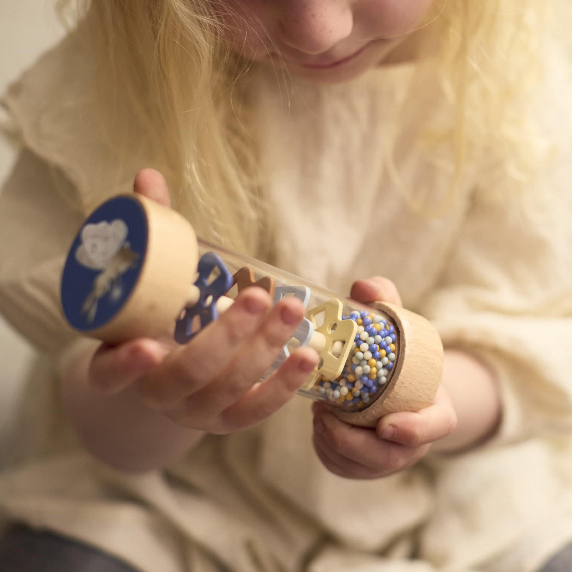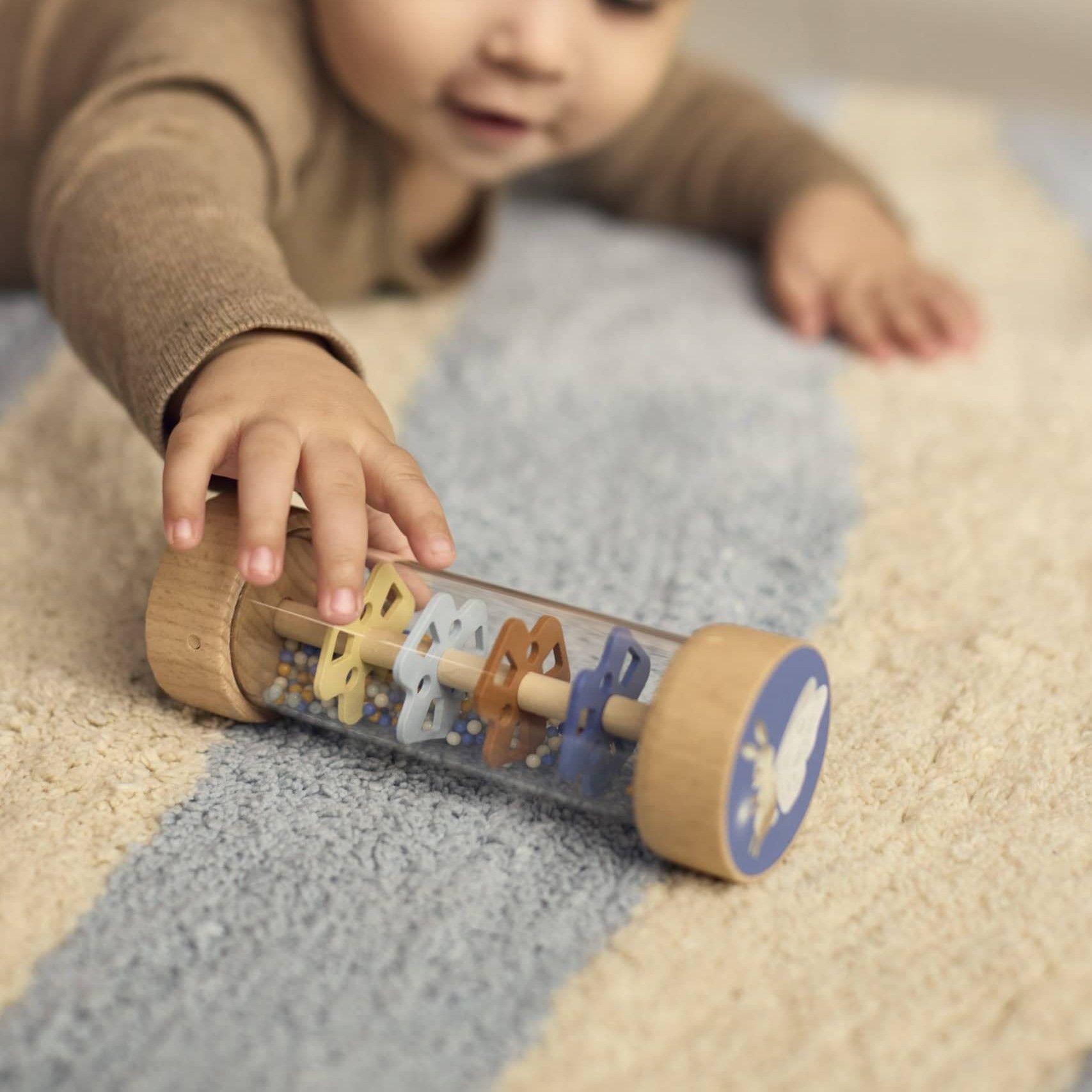 Kit Filibabba d'éveil sensoriel en bois pour bébé (dès 6 mois). 3 jouets (hochet, maracas, baton de pluie) pour développer le rythme et le son. Une belle Idée cadeau !